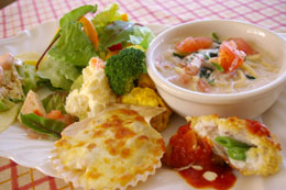 | ■8時間煮込んだ煮込んだ特製やわらか牛タンビーフシチュー ……………¥2,800 ■白身魚とキノコのソテースタミナソース ……………¥1,380 全8種類 |